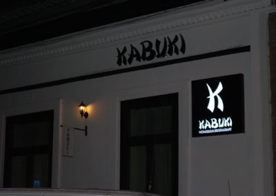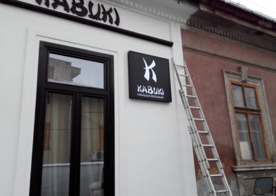 Pe structură de aluminiu și iluminate cu leduri, casetele pot fi confecționate din plexiglass, banner backlit, alucobond decupat etc.